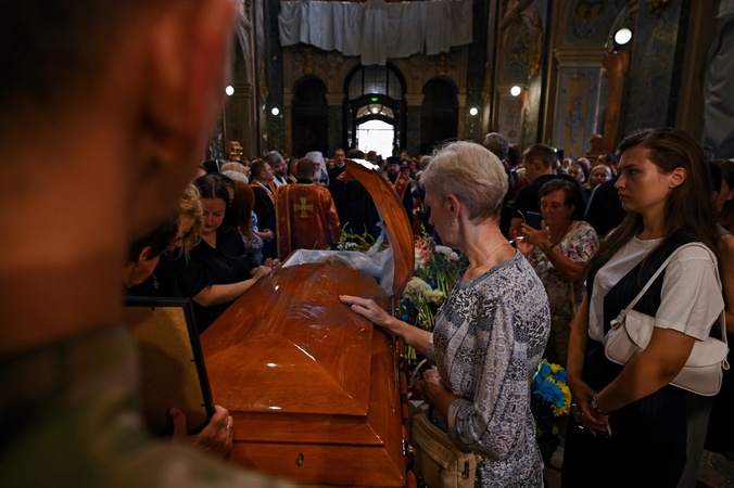 LVIV, UKRAINE - JULY 21, 2024 - People pay their last respects to linguistic professor and former MP Iryna Farion, who was shot dead on the street on July 19, during the memorial service at the Saints Peter and Paul Garrison Church, Lviv, western Ukraine., Credit:Anastasiia Smolienko / Avalon