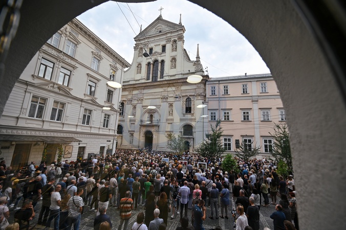 LVIV, UKRAINE - JULY 21, 2024 - Crowds gather to attend the memorial service for linguistic professor and former MP Iryna Farion, who was shot dead on the street on July 19, at the Saints Peter and Paul Garrison Church, Lviv, western Ukraine., Credit:Anastasiia Smolienko / Avalon