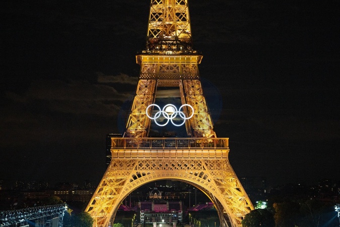 pierścienie olimpijskie Wieży Eiffla w Paryżu Olimpiada