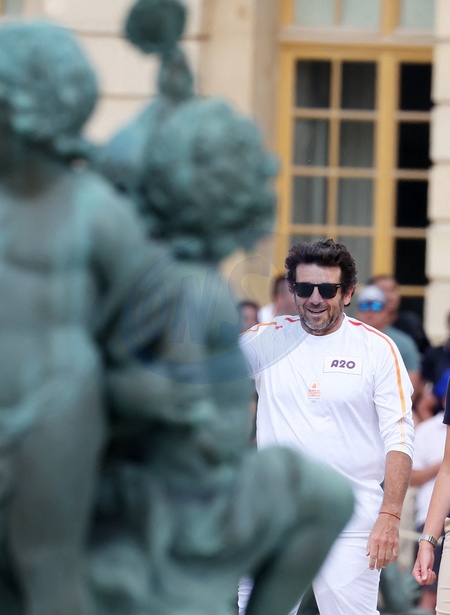Le chanteur et acteur Patrick Bruel porteur de la flamme olympique des Jeux Olympiques de Paris 2024 (JO) au château de Versailles dans les Yvelines, France, le 23 juillet 2024. © Dominique Jacovides/Bestimage French singer and actor Patrick Bruel carries the Olympic flame of the Paris 2024 Olympic Games (Olympics) at the Palace of Versailles, Yvelines, France, on July 23, 2024.