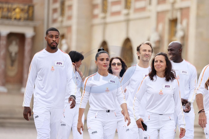 Salma Hayek et Patrick Bruel portent la flamme olympique des Jeux Olympiques de Paris 2024 (JO) au château de Versailles