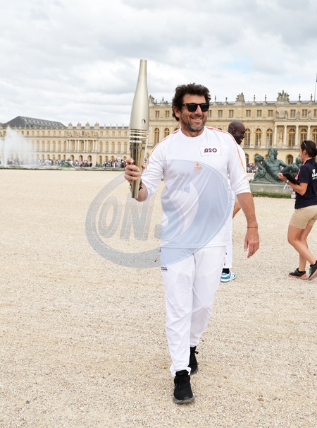Le chanteur et acteur Patrick Bruel porteur de la flamme olympique des Jeux Olympiques de Paris 2024 (JO) au château de Versailles dans les Yvelines, France, le 23 juillet 2024. © Dominique Jacovides/Bestimage French singer and actor Patrick Bruel carries the Olympic flame of the Paris 2024 Olympic Games (Olympics) at the Palace of Versailles, Yvelines, France, on July 23, 2024.