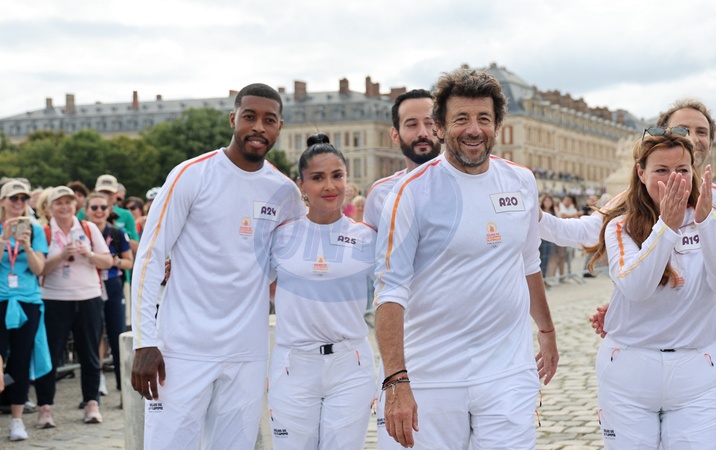 Salma Hayek et Patrick Bruel portent la flamme olympique des Jeux Olympiques de Paris 2024 (JO) au château de Versailles