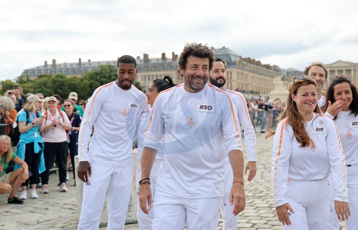 Salma Hayek et Patrick Bruel portent la flamme olympique des Jeux Olympiques de Paris 2024 (JO) au château de Versailles