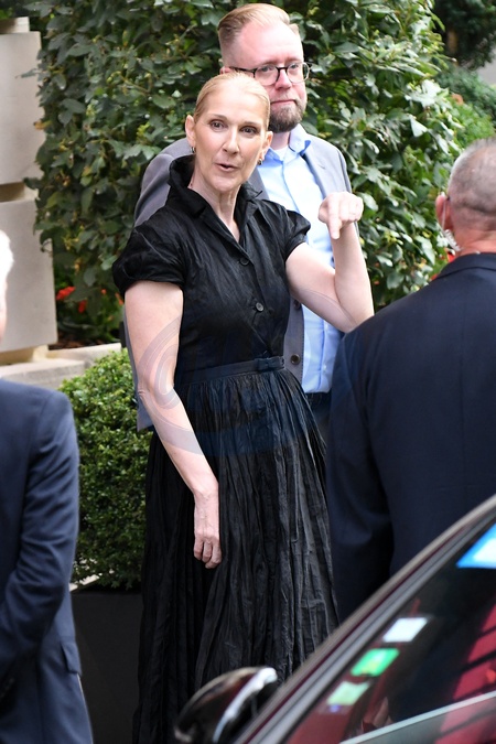 Céline Dion à la sortie de l'hôtel Royal Monceau à Paris avant l'ouverture des Jeux Olympiques (JO) de Paris 2024, à Paris, France, le 24 juillet 2024. Céline Dion leaving the Royal Monceau hotel in Paris before the opening of the Paris 2024 Olympic Games (JO), in Paris, France, July 24, 2024.