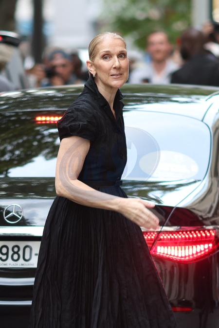Céline Dion à la sortie de l'hôtel Royal Monceau à Paris avant l'ouverture des Jeux Olympiques (JO) de Paris 2024, à Paris, France, le 24 juillet 2024. Céline Dion leaving the Royal Monceau hotel in Paris before the opening of the Paris 2024 Olympic Games (JO), in Paris, France, July 24, 2024.