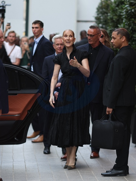 Céline Dion à la sortie de l'hôtel Royal Monceau à Paris avant l'ouverture des Jeux Olympiques (JO) de Paris 2024, à Paris, France, le 24 juillet 2024. Céline Dion leaving the Royal Monceau hotel in Paris before the opening of the Paris 2024 Olympic Games (JO), in Paris, France, July 24, 2024.