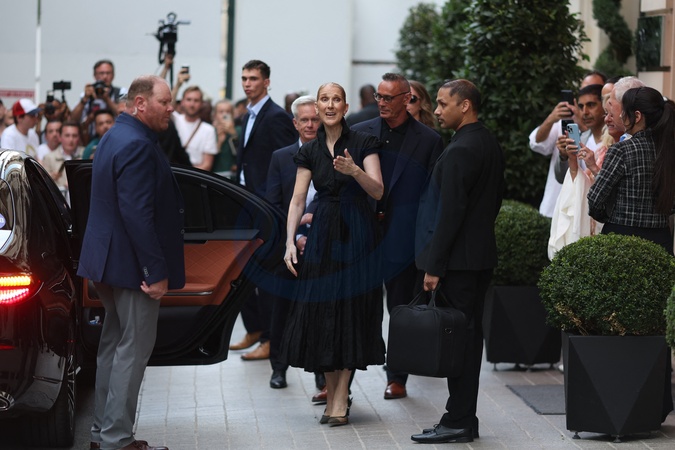Céline Dion à la sortie de l'hôtel Royal Monceau à Paris avant l'ouverture des Jeux Olympiques (JO) de Paris 2024, à Paris, France, le 24 juillet 2024. Céline Dion leaving the Royal Monceau hotel in Paris before the opening of the Paris 2024 Olympic Games (JO), in Paris, France, July 24, 2024.