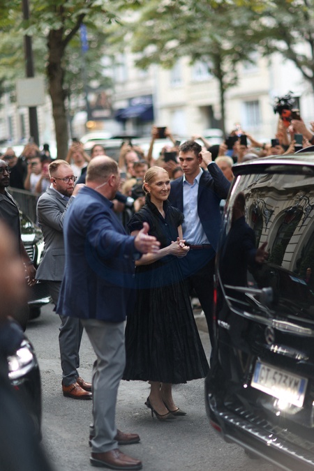 Céline Dion à la sortie de l'hôtel Royal Monceau à Paris avant l'ouverture des Jeux Olympiques (JO) de Paris 2024, à Paris, France, le 24 juillet 2024. Céline Dion leaving the Royal Monceau hotel in Paris before the opening of the Paris 2024 Olympic Games (JO), in Paris, France, July 24, 2024.