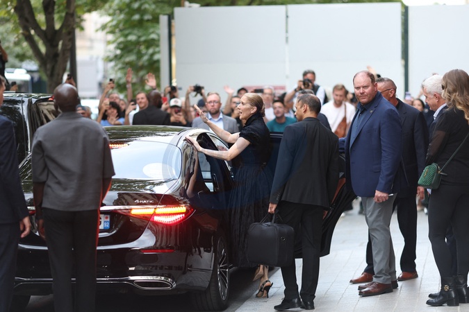 Céline Dion à la sortie de l'hôtel Royal Monceau à Paris avant l'ouverture des Jeux Olympiques (JO) de Paris 2024