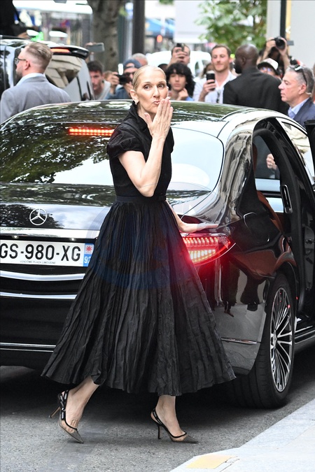 Céline Dion à la sortie de l'hôtel Royal Monceau à Paris avant l'ouverture des Jeux Olympiques (JO) de Paris 2024
