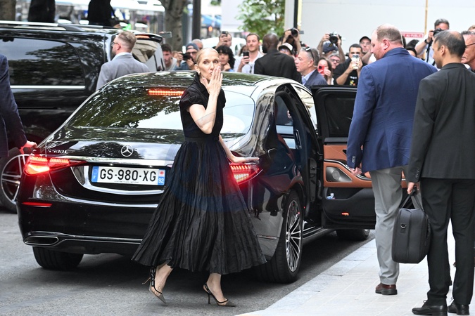 Céline Dion à la sortie de l'hôtel Royal Monceau à Paris avant l'ouverture des Jeux Olympiques (JO) de Paris 2024, à Paris, France, le 24 juillet 2024. Céline Dion leaving the Royal Monceau hotel in Paris before the opening of the Paris 2024 Olympic Games (JO), in Paris, France, July 24, 2024.