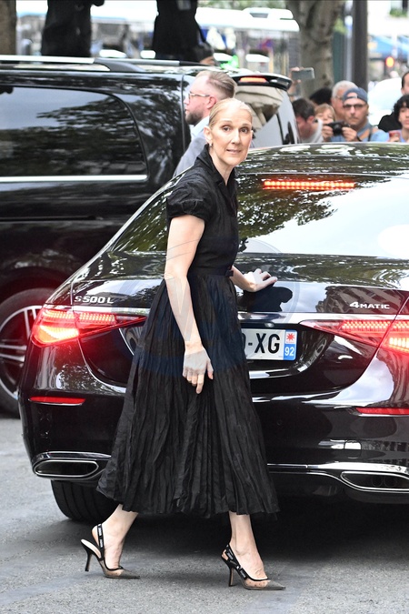 Céline Dion à la sortie de l'hôtel Royal Monceau à Paris avant l'ouverture des Jeux Olympiques (JO) de Paris 2024
