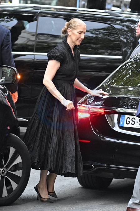 Céline Dion à la sortie de l'hôtel Royal Monceau à Paris avant l'ouverture des Jeux Olympiques (JO) de Paris 2024
