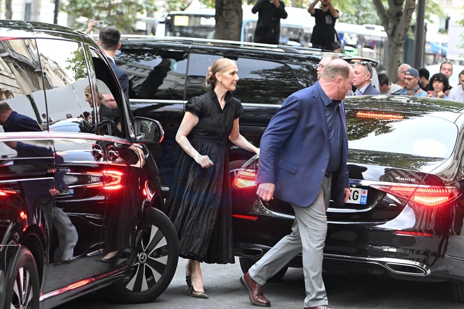 Céline Dion à la sortie de l'hôtel Royal Monceau à Paris avant l'ouverture des Jeux Olympiques (JO) de Paris 2024, à Paris, France, le 24 juillet 2024. Céline Dion leaving the Royal Monceau hotel in Paris before the opening of the Paris 2024 Olympic Games (JO), in Paris, France, July 24, 2024.