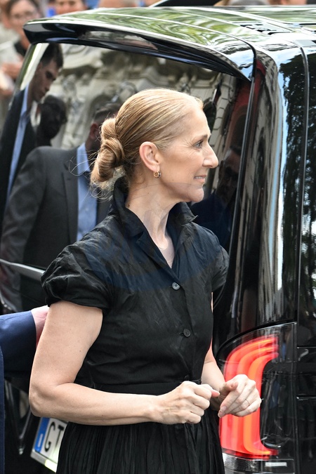 Céline Dion à la sortie de l'hôtel Royal Monceau à Paris avant l'ouverture des Jeux Olympiques (JO) de Paris 2024, à Paris, France, le 24 juillet 2024. Céline Dion leaving the Royal Monceau hotel in Paris before the opening of the Paris 2024 Olympic Games (JO), in Paris, France, July 24, 2024.