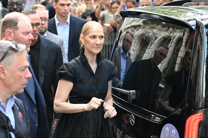Céline Dion à la sortie de l'hôtel Royal Monceau à Paris avant l'ouverture des Jeux Olympiques (JO) de Paris 2024, à Paris, France, le 24 juillet 2024. Céline Dion leaving the Royal Monceau hotel in Paris before the opening of the Paris 2024 Olympic Games (JO), in Paris, France, July 24, 2024.