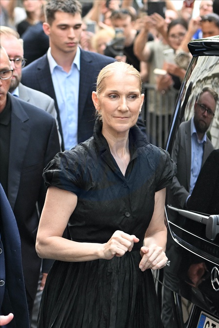 Céline Dion à la sortie de l'hôtel Royal Monceau à Paris avant l'ouverture des Jeux Olympiques (JO) de Paris 2024, à Paris, France, le 24 juillet 2024. Céline Dion leaving the Royal Monceau hotel in Paris before the opening of the Paris 2024 Olympic Games (JO), in Paris, France, July 24, 2024.