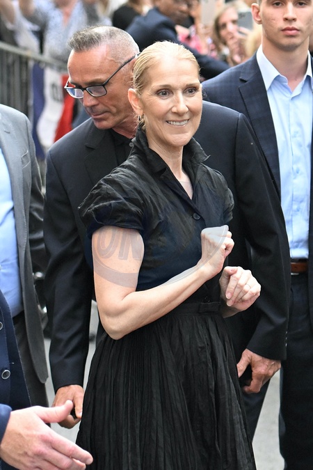 Céline Dion à la sortie de l'hôtel Royal Monceau à Paris avant l'ouverture des Jeux Olympiques (JO) de Paris 2024, à Paris, France, le 24 juillet 2024. Céline Dion leaving the Royal Monceau hotel in Paris before the opening of the Paris 2024 Olympic Games (JO), in Paris, France, July 24, 2024.
