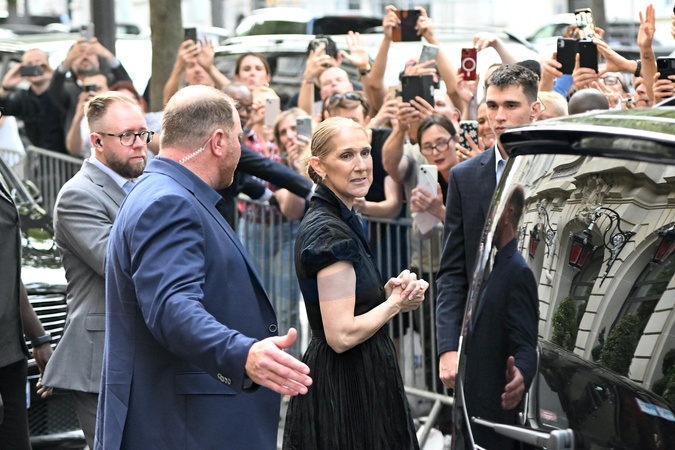 Céline Dion à la sortie de l'hôtel Royal Monceau à Paris avant l'ouverture des Jeux Olympiques (JO) de Paris 2024, à Paris, France, le 24 juillet 2024. Céline Dion leaving the Royal Monceau hotel in Paris before the opening of the Paris 2024 Olympic Games (JO), in Paris, France, July 24, 2024.