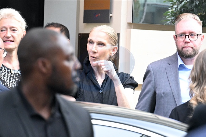 Céline Dion à la sortie de l'hôtel Royal Monceau à Paris avant l'ouverture des Jeux Olympiques (JO) de Paris 2024