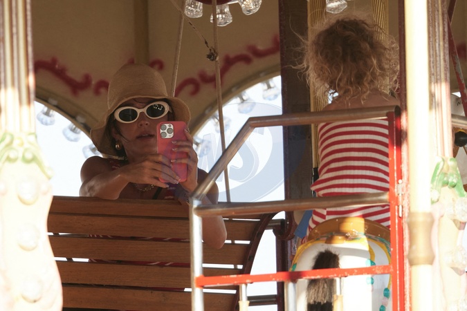 Semi-Exclusif - No Web - Katy Perry et son fiancé Orlando Bloom avec leur fille Daisy se baladent sur le port de Saint-Tropez, le 14 juillet 2024. Merci de flouter le visage des enfants avant publication Semi-Exclusive - No Web - Katy Perry and her fiancé Orlando Bloom with their daughter Daisy stroll on the port of Saint-Tropez, July 14, 2024.