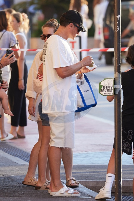 Semi-Exclusif - No Web - Katy Perry et son fiancé Orlando Bloom avec leur fille Daisy se baladent sur le port de Saint-Tropez, le 14 juillet 2024. Merci de flouter le visage des enfants avant publication Semi-Exclusive - No Web - Katy Perry and her fiancé Orlando Bloom with their daughter Daisy stroll on the port of Saint-Tropez, July 14, 2024.