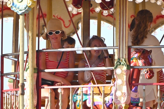 Semi-Exclusif - No Web - Katy Perry et son fiancé Orlando Bloom avec leur fille Daisy se baladent sur le port de Saint-Tropez, le 14 juillet 2024. Merci de flouter le visage des enfants avant publication Semi-Exclusive - No Web - Katy Perry and her fiancé Orlando Bloom with their daughter Daisy stroll on the port of Saint-Tropez, July 14, 2024.
