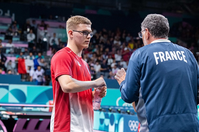 JO 2024 : TENNIS DE TABLE - La France perd contre Taiwan en double mixte - Jeux Olympiques 2024 le 27 juillet 2024 - Alexis Lebrun (FRA), Mixed doubles table tennis, against Szu-Yu Chen and Yun-Ju Lin (TPE), Mixed doubles round of 16, during the Olympic Games Paris 2024