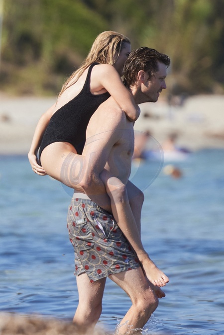 Ashley Benson, jej mąż Brandon Davis, Emma Roberts i jej narzeczony Cody John bawią się jak duże dzieci na plaży podczas wakacji w Zatoce Saint-Tropez