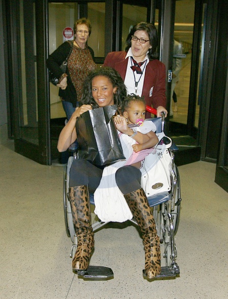 Melanie Brown przybywa na lotnisko na wozku inwalidzkim w Los Angeles