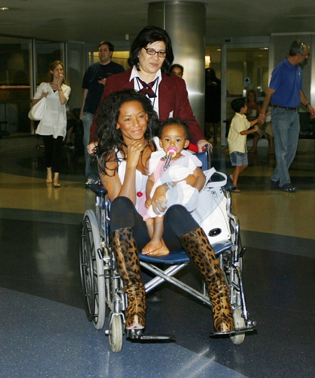 Melanie Brown przybywa na lotnisko na wozku inwalidzkim w Los Angeles