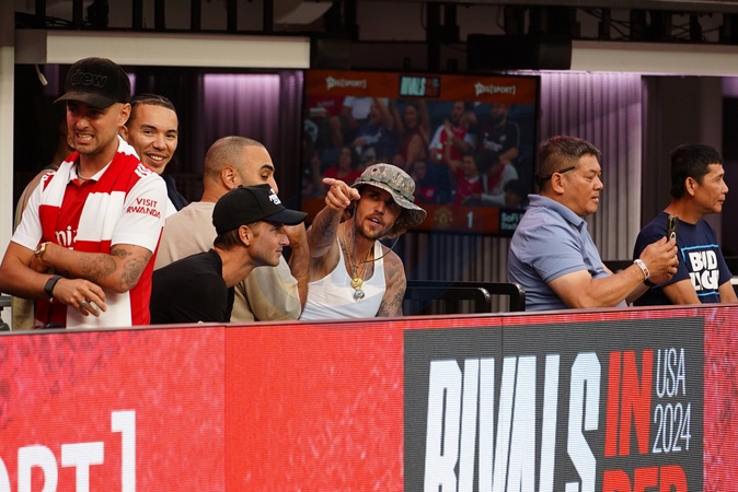 Celebrity Arsenal fan Justin Bieber watches Arsenal v Manchester United in the Rivals in Red match at SoFi Stadium, Los Angeles, USA, on 27 July 2024., Credit:Jerry Perez / Avalon