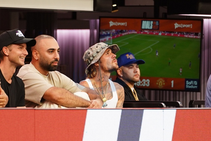 Znany fan Arsenalu, Justin Bieber, ogląda mecz Arsenalu z Manchesterem United w meczu Rivals in Red na stadionie SoFi