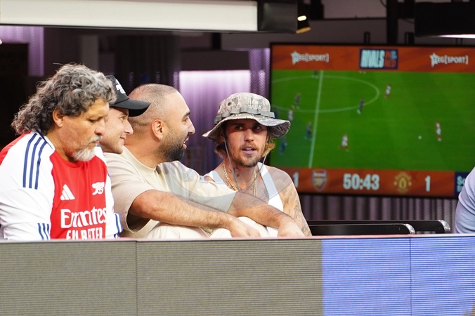Znany fan Arsenalu, Justin Bieber, ogląda mecz Arsenalu z Manchesterem United w meczu Rivals in Red na stadionie SoFi