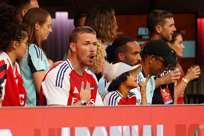 Celebrity Arsenal fan Will Poulter watches Arsenal v Manchester United in the Rivals in Red match at SoFi Stadium, Los Angeles, USA, on 27 July 2024., Credit:Jerry Perez / Avalon