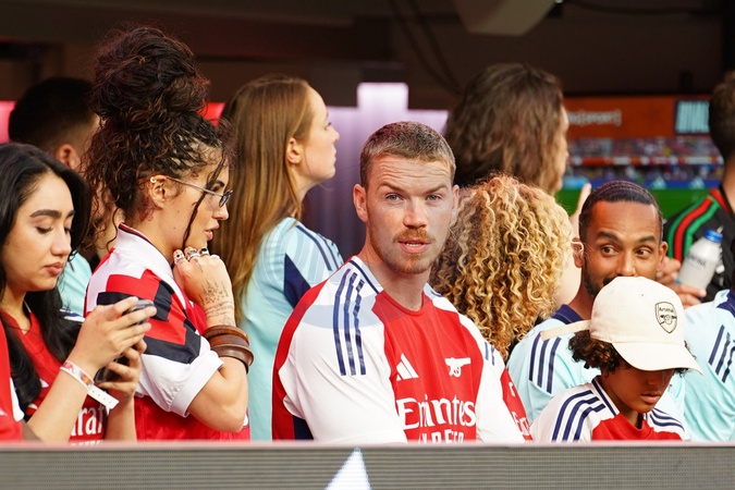 Celebrity Arsenal fan Will Poulter watches Arsenal v Manchester United in the Rivals in Red match at SoFi Stadium, Los Angeles, USA, on 27 July 2024., Credit:Jerry Perez / Avalon