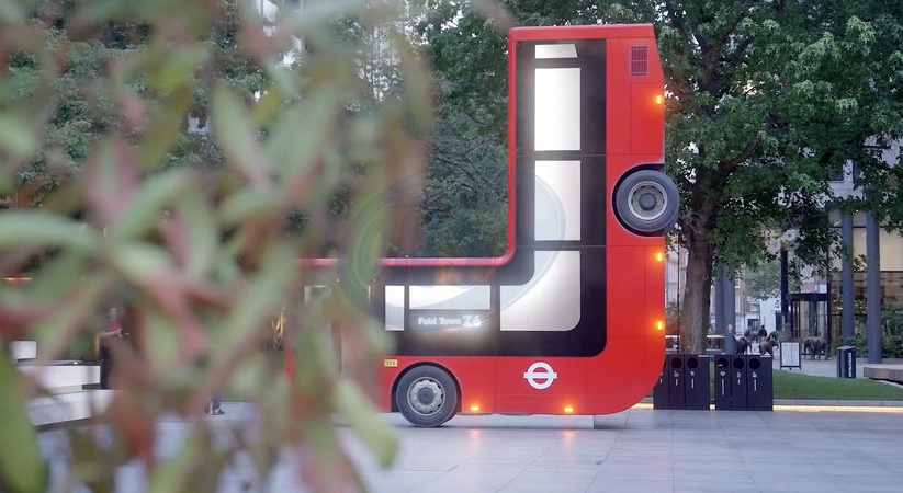 Pictures must credit: Samsung Commuters were stopped in their tracks as they spotted a full size, folded London bus. The single decker, which measures 6m by 6.2m appeared to have been folded upwards at 90-degree angle with is rear end nearly six metres off the ground. The bus forms part of a public art project, specially commissioned by electronics giant Samsung to celebrate the release of the its new Galaxy Z Fold6 and Galaxy Z Flip6. The bus, created by British artist Caspar Philips, t includes a host of recycled materials from real London buses. It was constructed to the accurate scale of a real single decker bus taking two months to design and build. Additional public art installations include a folded bench, lamppost and telephone box, created by designer Jem Hughes. The iconic domed telephone box was complete with a payphone and phone book, with the lamppost folding at nearly three metres tall. The public will be able to see the art installations in and around London for themselves until 27th July 2024. Picture supplied by JLPPA