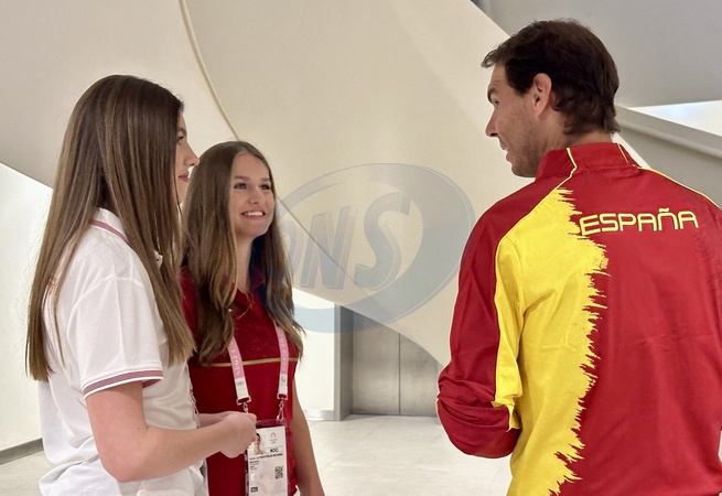 La princesse Leonor et la princesse Sofia d'Espagne assistent à différentes épreuves lors des Jeux Olympiques 2024 à Paris (JO 2024) - Spain Princess Leonor and Princess Sofia pictured with Rafael Nadal and Carlos Alcaraz during the mens double at the Paris 2024 Olympic Games in Paris, France. Casa S.M. El Rey via Bestimage