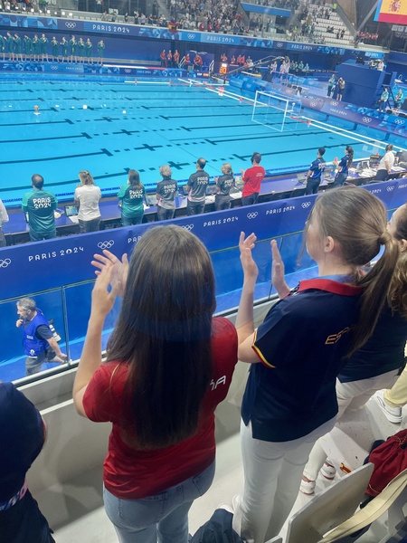 La princesse Leonor et la princesse Sofia d'Espagne assistent à différentes épreuves lors des Jeux Olympiques 2024 à Paris (JO 2024) - Princess Leonor and Princess Sofia during Olympic waterpolo at the Paris 2024 Olympic Games in Paris, France. Casa S.M. El Rey via Bestimage