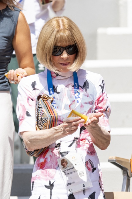 Anna Wintour uczestniczy w zawodach tenisa kobiecego podczas Igrzysk Olimpijskich w Paryżu w 2024 r. (OG) na stadionie Roland Garros