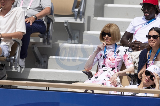 Anna Wintour assiste à une épreuve de tennis féminin lors des Jeux Olympiques de Paris 2024 (JO) à Roland Garros, à Paris, France, le 28 juillet 2024. © Jacovides-Perusseau/Bestimage Anna Wintour attends a women's tennis event during the Paris 2024 Olympic Games (Olympics) at Roland Garros in Paris, France, July 28, 2024.