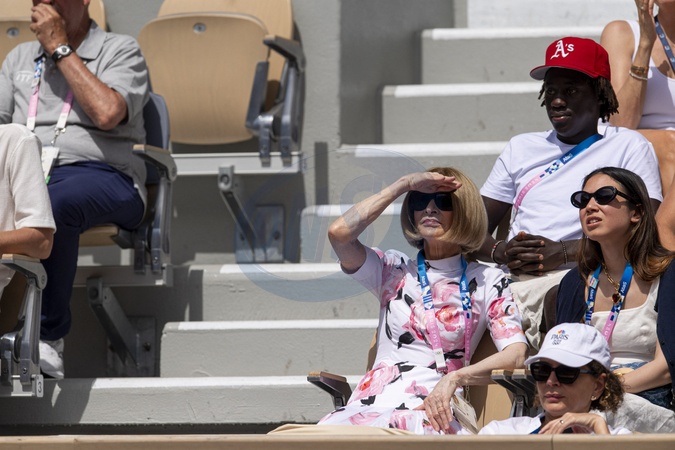 Anna Wintour assiste à une épreuve de tennis féminin lors des Jeux Olympiques de Paris 2024 (JO) à Roland Garros, à Paris, France, le 28 juillet 2024. © Jacovides-Perusseau/Bestimage Anna Wintour attends a women's tennis event during the Paris 2024 Olympic Games (Olympics) at Roland Garros in Paris, France, July 28, 2024.