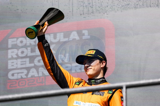 George Russell remporte le grand prix de Belgique de Formule 1 (F1) à Spa-Francorchamps - PIASTRI Oscar (aus), McLaren F1 Team MCL38, portrait podium during the Formula 1 Rolex Belgian Grand Prix 2024, 14th round of the 2024 Formula One World Championship from July 26 to 28, 2024 on the Circuit de Spa-Francorchamps, in Stavelot, Belgium -