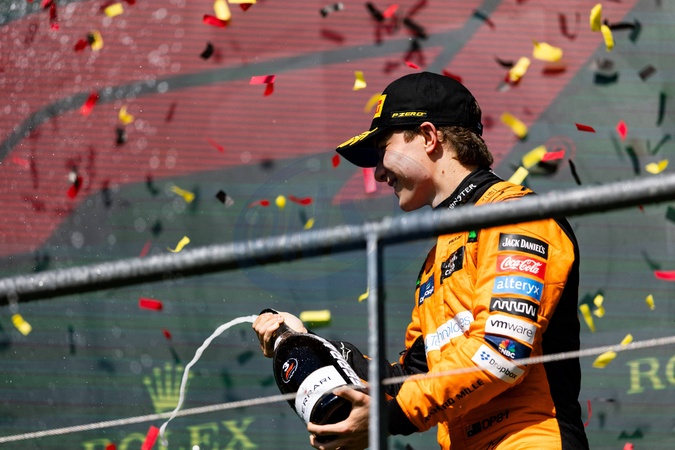 George Russell remporte le grand prix de Belgique de Formule 1 (F1) à Spa-Francorchamps - PIASTRI Oscar (aus), McLaren F1 Team MCL38, portrait podium during the Formula 1 Rolex Belgian Grand Prix 2024, 14th round of the 2024 Formula One World Championship from July 26 to 28, 2024 on the Circuit de Spa-Francorchamps, in Stavelot, Belgium -