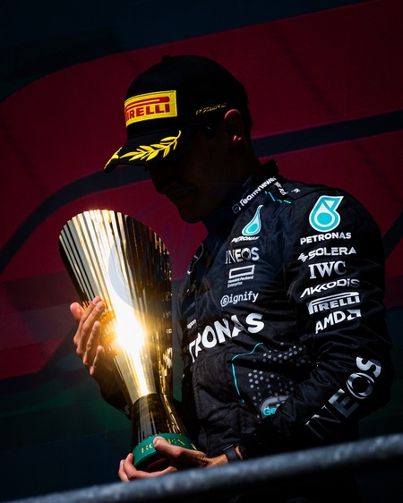 DPPI - George Russell remporte le grand prix de Belgique de Formule 1 (F1) à Spa-Francorchamps - RUSSELL George (gbr), Mercedes AMG F1 Team W15, celebrating the race win during the Formula 1 Rolex Belgian Grand Prix 2024, 14th round of the 2024 Formula One World Championship from July 26 to 28, 2024 on the Circuit de Spa-Francorchamps, in Stavelot, Belgium -