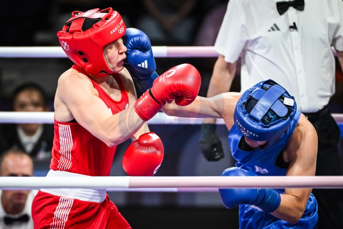 ECCLES Rosie of Great Britain and RYGIELSKA Aneta of Poland during the Boxing, WOMEN'S 66KG - PRELIMINARIES, Olympic Games Paris 2024 on 28 July 2024 at North Paris Arena in Villepinte, France. © Matthieu Mirville / DPPI Media / Panoramic / Bestimage