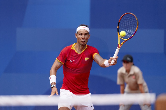 Rafael Nadal of Team Spain during the Men's Singles first round match on day two of the Olympic Games Paris 2024 at Roland Garros on July 28, 2024 in Paris, France. © Jacovides-Perusseau/Bestimage
