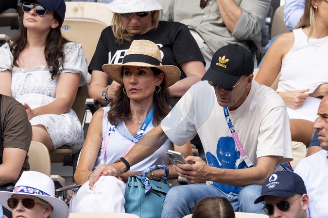 Zinédine Zidane et sa femme Véronique assistent à l'épreuve de tennis (Rafael Nadal) lors des Jeux Olympiques de Paris 2024 (JO) à Roland Garros, à Paris, France, le 28 juillet 2024. © Jacovides-Perusseau/Bestimage Zinedine Zidane and his wife Veronique attend the tennis event (Rafael Nadal) during the Paris 2024 Olympic Games (Olympics) at Roland Garros, in Paris, France, July 28, 2024.