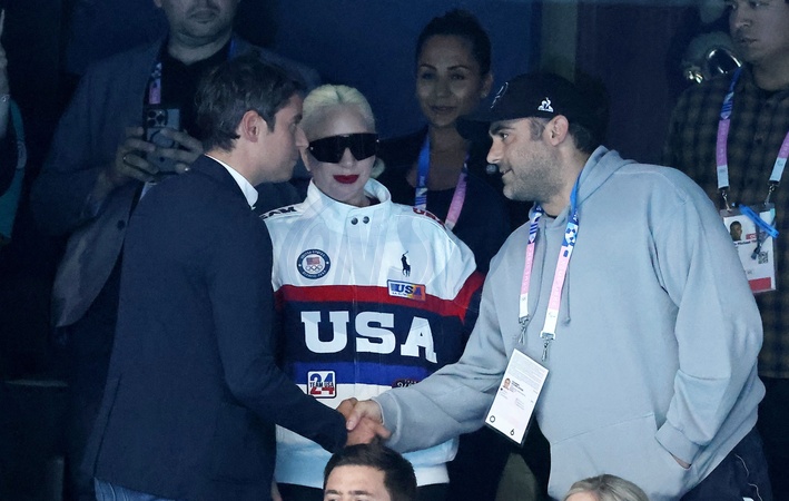 Lady Gaga i jej narzeczony Michael Polansky biorą udział w zwycięstwie Léona Marchanda w biegu na 400 m stylem zmiennym podczas Igrzysk Olimpijskich w Paryżu w 2024 r. (OG) w Paris La Defense Arena w Nanterre